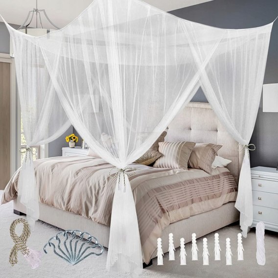 Wysokiej jakości materiał: ta siatka przeciw komarom z 4 rogami jest wykonana z wysokiej jakości poliestrowej siateczki, jest nieszkodliwa, lekka, oddychająca i szybkoschnąca. Jest bezpieczny dla niemowląt. Małe otwory mogą trzymać komary i inne owady z dala i umożliwiają przyjemny sen.