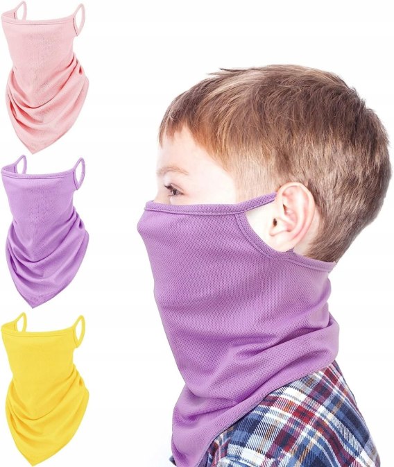 WYGODNE I ODDYCHAJĄCE - Polecane dla dzieci w wieku od 3 do 8 lat. Ta chustka dla dzieci jest wykonana z wysoce elastycznego i przyjaznego dla skóry materiału z włókien poliestrowych, który charakteryzuje się odprowadzaniem wilgoci i szybkim schnięciem, dzięki czemu dzieci czują się oddychające i wygodne podczas jazdy na rowerze, biegania, joggingu lub wykonywania innych codziennych ćwiczeń na świeżym powietrzu.