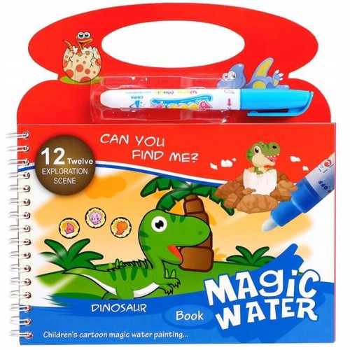 Książka zawiera cztery sceny do kolorowania oraz obrazki do wyszukania dla każdej z nich. Ergonomiczny rozmiar pióra wodnego jest wygodny dla dzieci.