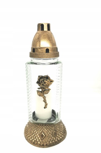 PIĘKNY ARTYSTYCZNY ZNICZ WYKONANY Z MOCNEGO SZKŁA Z NOWOCZESNĄ APLIKACJĄ W KSZTAŁCIE Cudownej Róży .