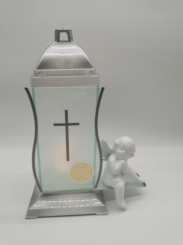 ZNICZ KAPLICZKA BIAŁE SREBRO Z KRZYŻEM I ANIOŁEM
