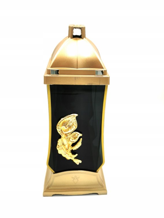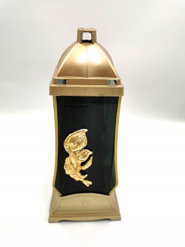 LAMPION ZE ZŁOTĄ KALIĄ . KOLOR SZKŁA CZARNY. LAMPION LUSTRZANY. EFEKT 3D