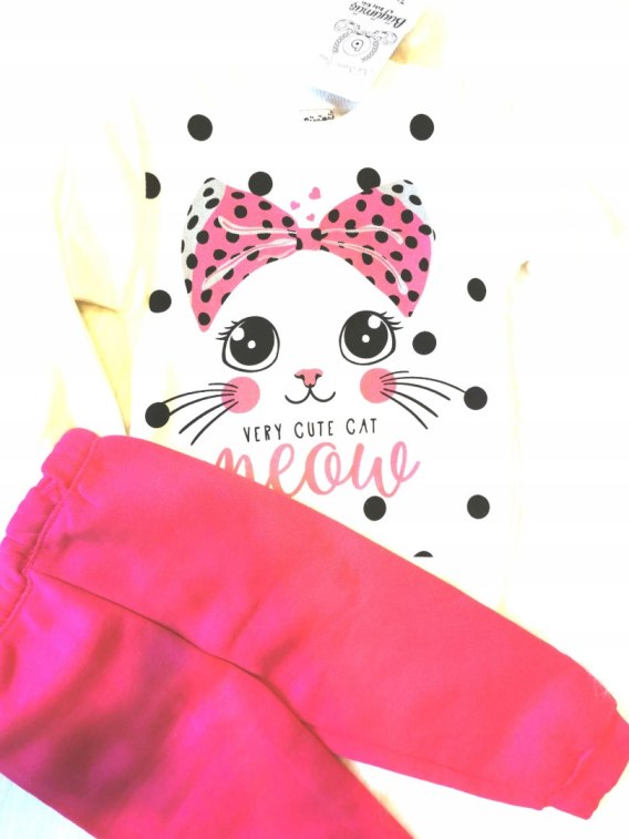 Zestaw dla dziewczynki dres roczek 80 nadruk kotek