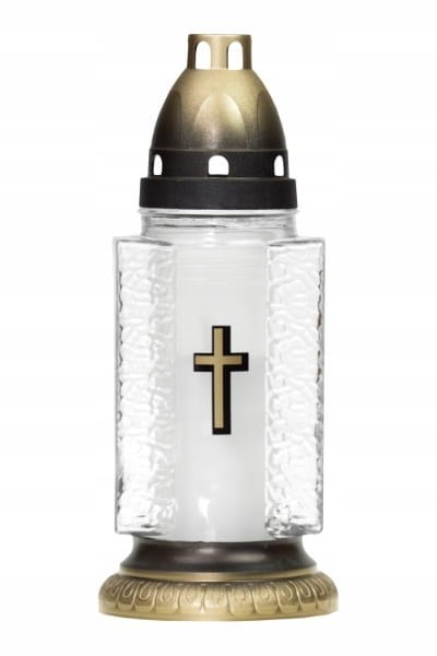 KLASYCZNY ZNICZ WYKONANY Z TŁOCZONEGO SZKŁA Z NOWOCZESNYM WZOREM.