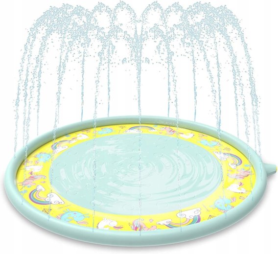 Duża podkładka Splash Pad dla dzieci: mata do zabawy z tryskaczami 68"/172 cm zapewnia wystarczająco dużo miejsca dla 2-3 dzieci, a nawet zwierzaka do zabawy w tym samym czasie. Posiada również urocze wzory z motywem jednorożca, które zapewniają dodatkową zabawę.