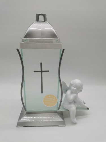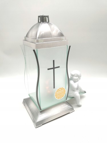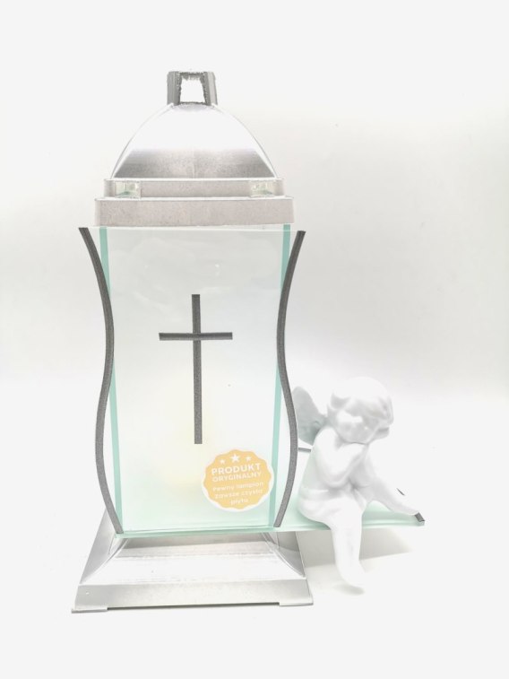 ZNICZ KAPLICZKA BIAŁE SREBRO Z KRZYŻEM I ANIOŁEM