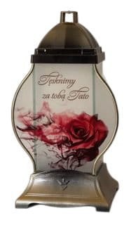 • ZNICZ SZKLANA KAPLICZKA Z RÓŻĄ I DEDYKACJĄ DLA TATY ( WYBÓR KOLOR)