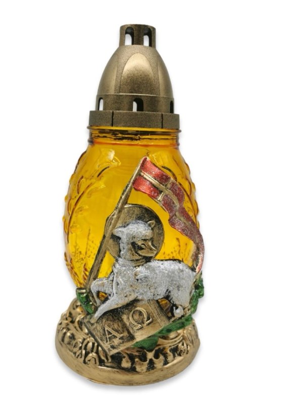 Znicz Wielkanocny Baranek z Księgą i Pisanką.